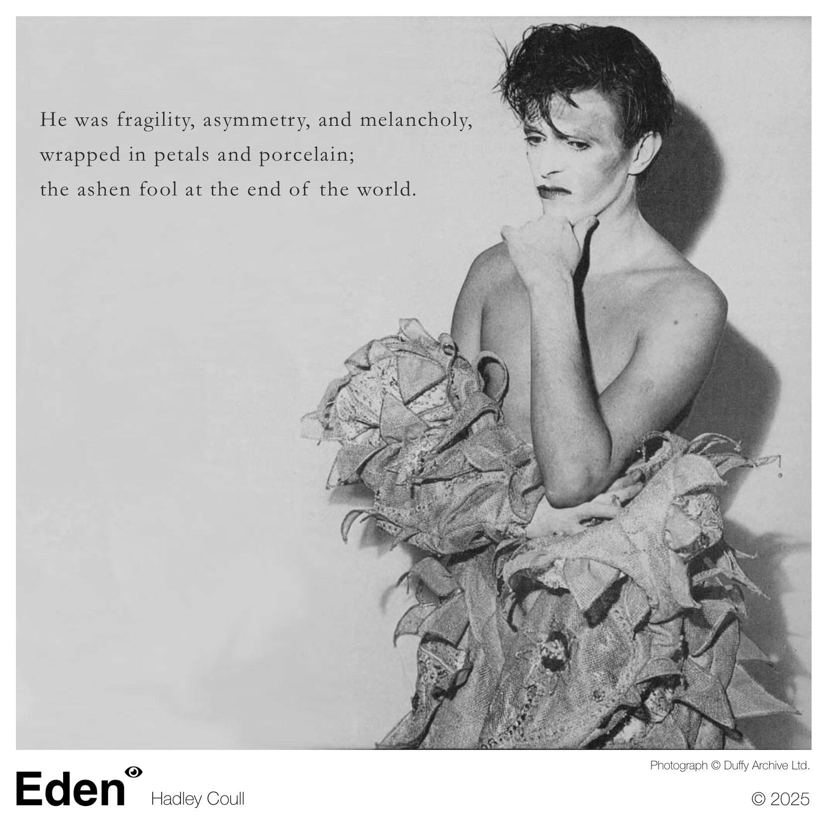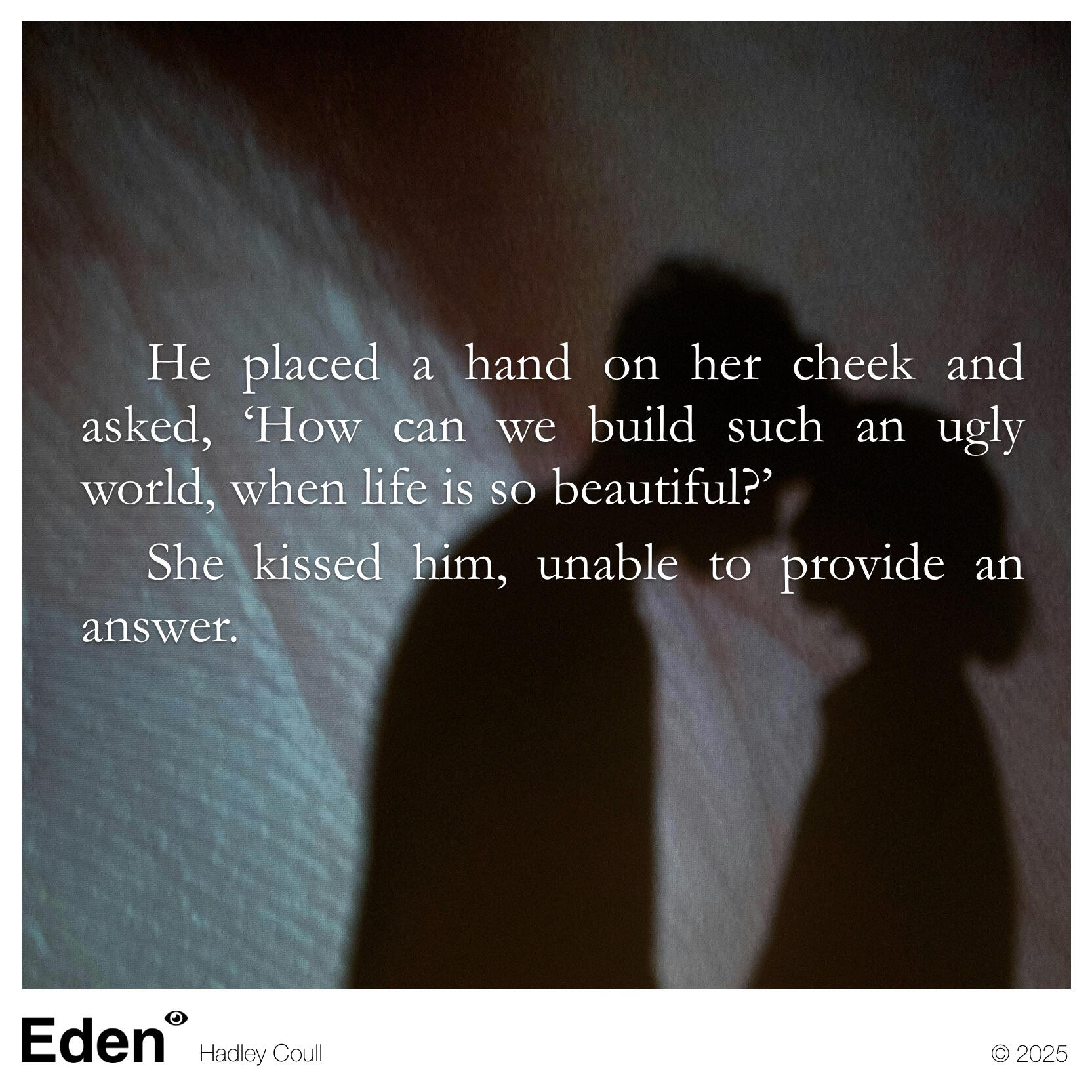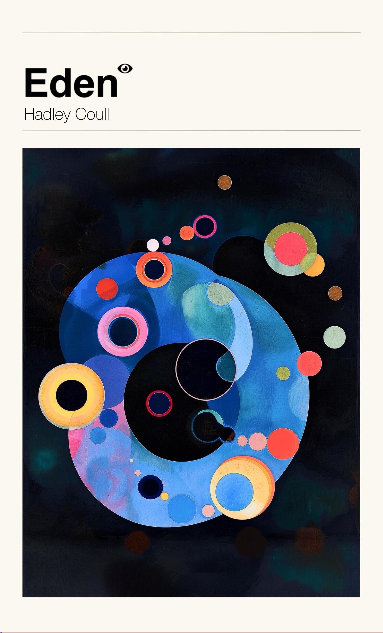 Eden is a work of speculative fiction scribbled in grief and glow, a story of our descent into images, and a meditation on love and tenderness in a dying world.